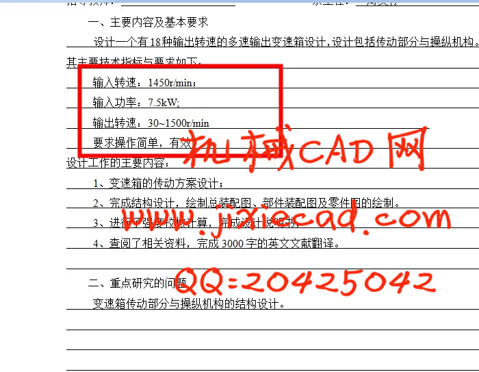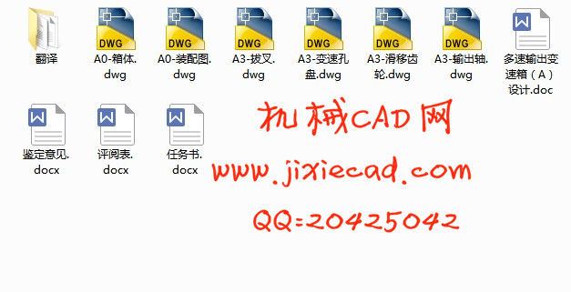 Multi-speed output gearbox is a kind of mechanism make an input speed change into different speed.This mechanism used in main drive and feeding system of machine tool widely.The design of Multi-speed output gearbox related to many professional courses of Machinery,such as,Mechanical principle,Machine design,Machine manufacturing and so on.In the design of Multi-speed output gearbox,I has completed gear design,axis design and strength check,bearing life calculation and so on.The Multi-speed output gearbox designed this time mostly used in the Main drive of Vertical Milling Machine