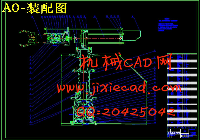 摘要 本文简要介绍了工业机器人的概念,机械手硬件和软件的组成,即PLC控制的气动机械手的系统工作原理,机械手各个部件的整体尺寸设计,气动技术的特点,PLC控制的特点。本文对机械手进行总体方案设计,确定了机械手的坐标形式和自由度,确定了机械手的技术参数。同时,设计了机械手的夹持式手部结构,设计了机械手的手腕结构,计算出了手腕转动时所需的驱动力矩和回转气缸的驱动力矩。设计了机械手的手臂结构。设计出了机械手的气动系统,绘制了机械手气压系统工作原理图,大大提高了绘图效率和图纸质量。利用可编程序控制器对机械手进行控制,选取了合适的PLC型号,根据机械手的工作流程制定了可编程序控制器的控制方案,画出了机械手的工作时序图,并绘制了可编程序控制器的控制程序。