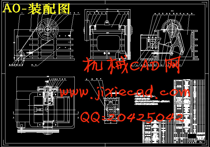 This article is about a PE600 × 900 complex pendulum jaw crusher design and calculations. Complex tilting jaw crusher named after jaw reciprocating complex motion in general plane which driven by the eccentric shaft. Moving trajectory of the point on the jaw is generally closed curve. Because the eccentric shaft load is large, so the complex pendulum jaw crusher is generally small or medium size and broken up can be more than 10. In operation, the eccentric shaft is rotated counterclockwise, the material has the back downward and the clamping force. Complex pendulum jaw crusher are made of main frame, eccentric shaft, moving jaw, movable jaw liners, a fixed lining and other components, including the adjustment devices, security protection devices and sealed dust devices. In this articles are mainly researched compound pendulum jaw crusher motion analysis, structural parameters, performance parameters, select the motor, the eccentric shaft design check, calculate V belt, compared to determine the transmission scheme, the eccentric shaft optimization improvements, adjustments equipment and safety devices.