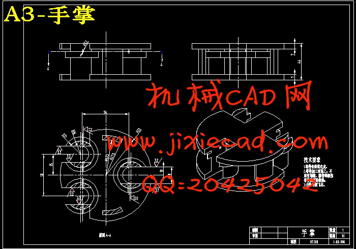 本设计是根据亚确定输入的原理设计的以少输入控制多自由度的三指九自由度机械手,当在机械手初始运动时机械手的每个手指作为一个运动单元作整体的运动,但当机械手手指的第一个指节因某种因素突然受阻,驱动力克服动力约束,自动启动了位于第一个指节和第二个指节之间关节的转动自由度,这时就应用了各个手指的第二个自由度,同样的,当第二个指节和第三个指节间的转动自由度因为某种外在的因素突然受阻时,自动启动机械手各个手指的第三个自由度。这样就实现了机械手的以少输入控制多自由度的控制方式,以达到机械手对不同形状工件的抓取动作,可以达到省力、省能以及减少电动机设计容量,因而减少机构的负载及改善动力性能。