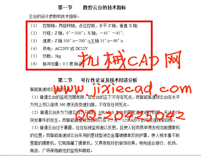 第一节 数控云台的技术指标..……………………………………….…………..4