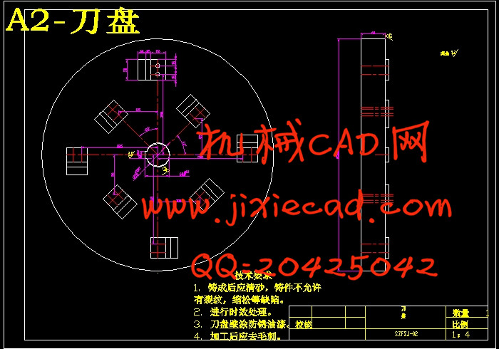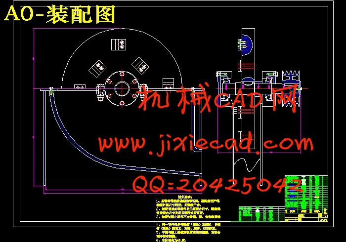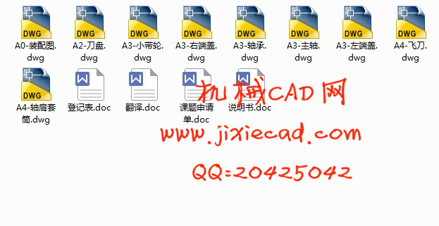 本机的机架、上盖都采用了铸件,降低了整机的重心;发动机和主轴之间通过皮带传动,缓和了载荷冲击;主轴通过两个圆锥滚子轴承与机架连接;刀盘和主轴之间采用平键联接;飞刀用垫块和螺栓固定。飞刀采用螺旋曲面方式依次摆放多把短刀。