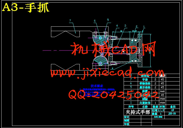 本机械手为上料机械手,为使其通用性加强,故同时设计了机械手的夹持式手部结构和吸附式手部结构,可以更换使用。计算出了手腕转动时所需的驱动力矩和回转汽缸的驱动力矩,确定了相关尺寸,设计了机械手的腕部结构;设计了机械手的手臂结结构;设计了手臂伸缩,升降用液压缓冲器和手臂回转用液压缓冲器。