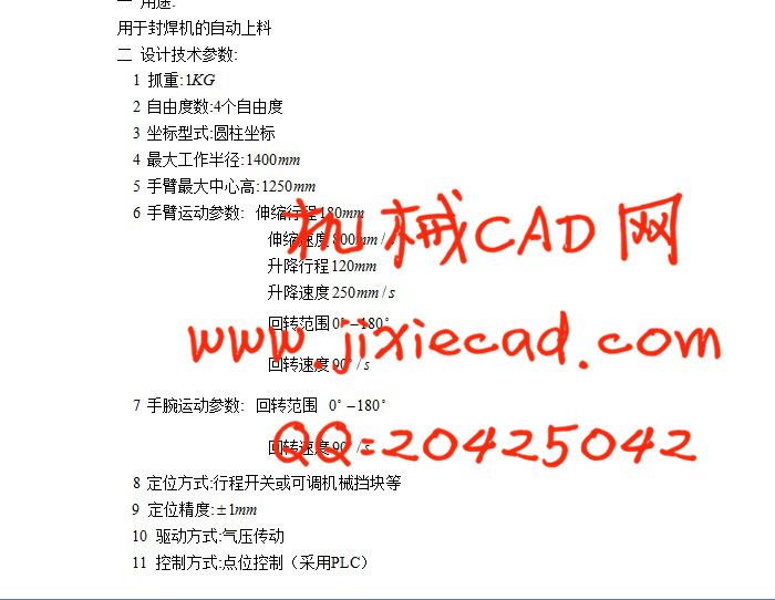 本文通过对机械手的组成和分类,及国内外的发展状况的了解,进行了总体方案设计,确定了机械手用四自由度和圆柱坐标型式。