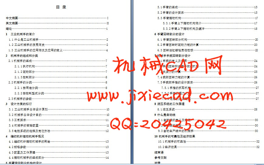 6.1 手臂回转部分机构……………………………………………………………20
