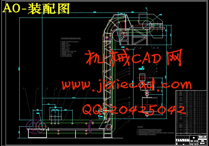 长距离、大运量、高速是带式输送机的最新发展方向。与其它输送设备相比,带式输送机运行更可靠,易于实现自动化和集中控制,经济效益十分明显。大倾角挡边带式输送机就是其中的一个。而覆带式挡边带式输送机更是弥补了普通挡边机所存在的不足之处。本文首先对普通带式输送机的运用、分类、特点、原理作了简单地概述,接着阐述了大倾角挡边机的技术优势,引出本次设计-覆带式挡边带式输送机的设计意义;然后对整机的设计方案进行比较选择,在传动方案方面,本文选取了3种传动方式进行比较,选出最经济、实用的一种方式,对驱动装置的每个部件进行了较为详细的描述,然后做出选择;接着对设计中所需要的数据进行设计计算,再根据设计准则与计算选型方法按照给定参数要求,对输送机的传动装置、改向装置、拉紧装置、中部机架、托辊、清扫装置等进行选型设计;接着对输送机的传动滚筒轴等主要零部件进行了强度校核;最后简单地说明了输送机的电气及安全保护装置。