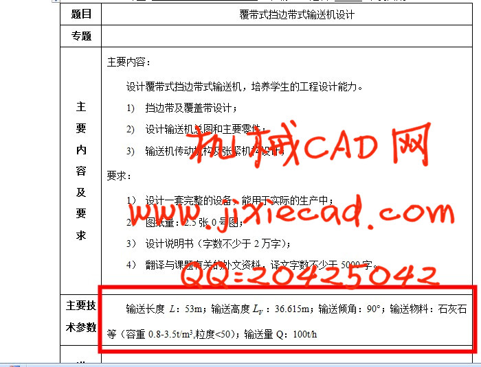 Key words:belt conveyor;program design;parts selection;design caculations