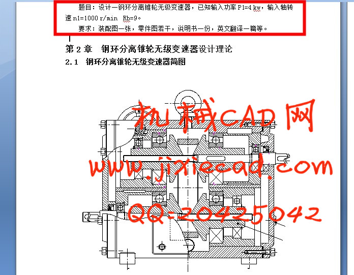 关键词:钢环,锥轮,无级变速,齿轮,轴