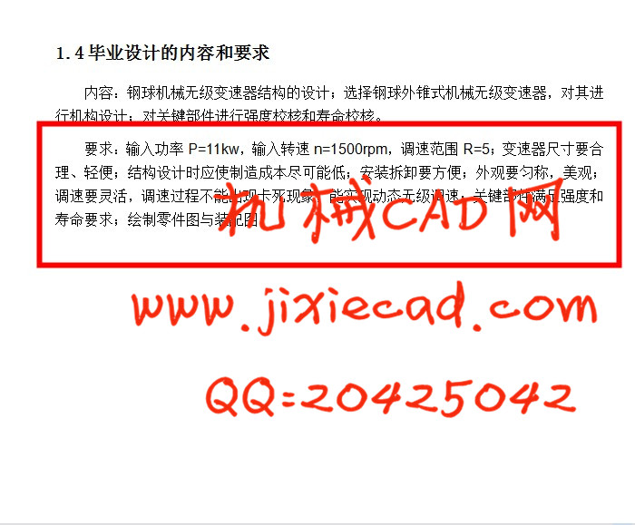 Machinery to adapt to the changing process of requirements, process development and general driving stepless variable speed drive system to improve the mechanical performance of mechanization and automation equipment. Mechanical friction is introduced, the design and calculation method of infinitely variable speed, materials and lubrication of the basic knowledge structure, and stepless variable speed design theory.Changing the design by changing the radius of the ball to reach the goal of the output axis of the cone wheel stepless speed as intermediate conical wheel drive components, work. Analysis of the relationship between driving and driven wheels, power transmission between the ball and external engineering in the process of transmission, the actual stepless ball cone pulley is derived in detail the design formula of design and selection of parameters are used to calculate the specific design, draw the part drawing calculation stepless ball cone wheel assembly and the main transmission components, the performance of other aspects of transmission technology architecture and requirements clearly.