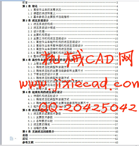 关键词: 高空作业车;起重机构;液压传动系统设计;液压缸;液压马达