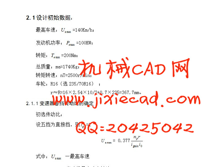 2.1.1变速器各档传动比的确定…………………………………………..5