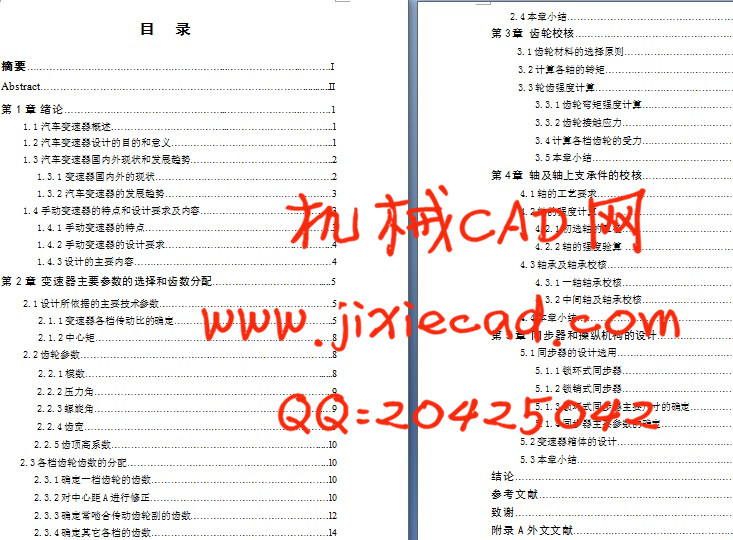 Using the transmission of transmission oart has two outstanding advantages: one is the direct transmission efficiency, the wear and tear of noise and minimum, The center distance of small gear cases can still get larger gear transmission. The transmission has five forward and one reverse, and through the lock ring type synchronizer to realize the shift. This design is discussed in the overall structure, design of the gear and finish the checking and calculating and axial CAD drawing, etc.