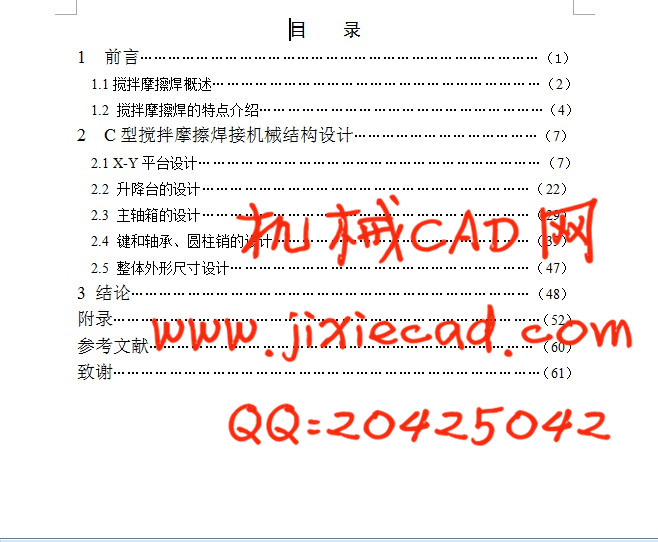 2 C型搅拌摩擦焊接机械结构设计…………………………………(7)