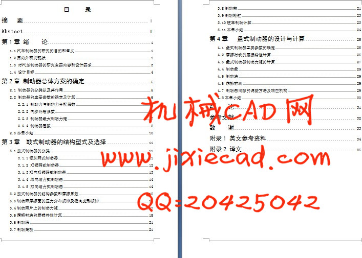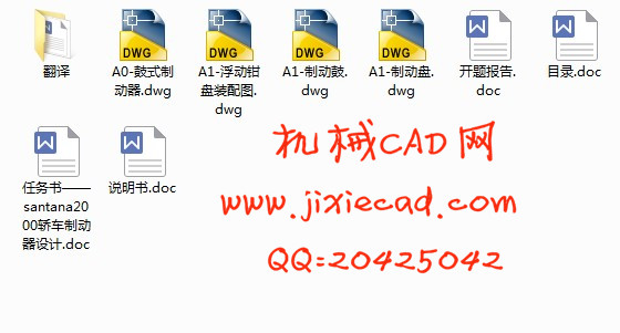 Car development has been the brakes are almost friction type, can be divided into two categories: drum and disc. The main advantage of the disc brake is on the braking can quickly braking, cooling effect is better than that of drum brake, braking performance of constant qualitative good, drum brakes, the main advantage is the brake shoe piece of wear less, low cost, convenient in maintenance, because of drum brake system of absolute power far higher than disc brakes, so commonly used to rear wheel drive the truck on but because in order to improve its efficiency and must be put on the brake braking force system, make the increased cost is higher, so general or use QianPan units HouGu type. Because the design for the design of the car is adopted, QianPan HouGu type.This manual mainly designed santana2000 cars brake. First this paper reviewed the automobile braking system development, structure, classification, and through to the drum brake disc brake and the structure of the advantages and disadvantages and analyzed. Final QianPan scheme adopts the HouGu type brake. In addition, the brakes and before and after the parameters of the main parts of the selection and calculation. At the same time santana2000 rear wheels of the car brake drum in the parameter selection and calculation.