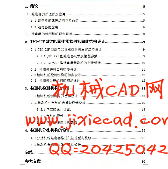 本文先从总体上对继电器检测机进行设计,然后着重研究和设计了检测机的检测机构和分拣机构,得到了符合要求的检测机。