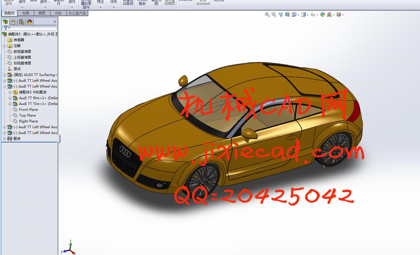The car is not only a means of transport, is also a modern decor, its beautiful shape and bright color brings people to enjoy beauty. Can meet the basic requirements of car speed, safety and comfort, is the objective evaluation of car appearance standard. The car color is not only the automobile outer packaging and brand identity of the logo, also contains the consumption psychology, cultural background, personality and other factors. Gradually assimilated in the shape of the car today, the Audi TT as an example, using detailed modeling and motion simulation of SolidWorks.