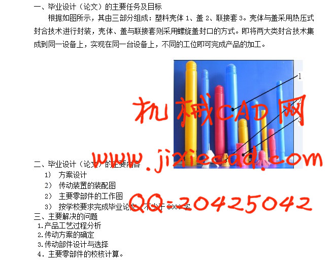 本文详细介绍了运用SolidWorks软件(3D 机械设计软件的标准)进行塑料桶柱封口连接机的设计。由于SolidWorks软件无论对零件设计,还是对整个机构设计都起了一个模拟仿真的作用,在SolidWorks软件中,我们可以直观,清楚地了解整个设计的外形,运作甚至是材料的分析。