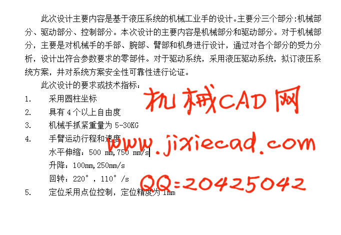 关键词:手部,腕部,臂部,液压系统