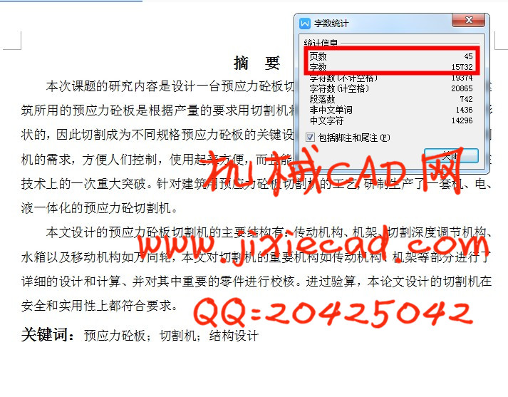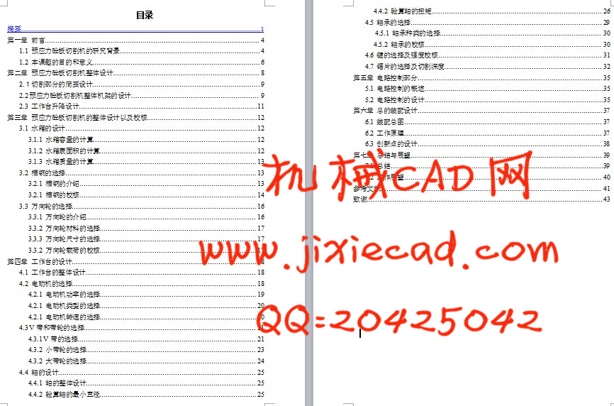 The main structure of prestressed concrete plate cutting machine designed in this paper are: transmission, chassis, cutting depth adjustment mechanism, tanks and mobile organizations such as caster, this paper cutter important institutions such as transmission, chassis and other parts detailed design and calculation, and one of the important parts to be checked. Been to checking the paper cutter design on safety and practicality are met.