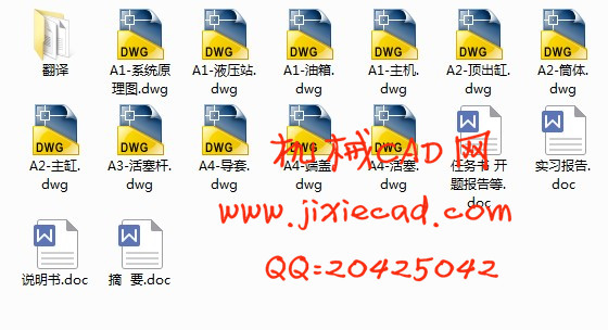 本设计为中型四柱式液压机,主机最大工作负载设计为2000KN。主机主要由上梁、导柱、工作台、移动横梁、主缸、顶出缸等组成。本文重点介绍了液压系统的设计。通过具体的参数计算及工况分析,制定总体的控制方案。经方案对比之后,拟定液压控制系统原理图。液压系统选用插装阀集成控制系统,插装阀集成控制系统具有密封性好,通流能力大,压力损失小等特点。为解决主缸快进时供油不足的问题,主机顶部设置补油油箱进行补油。主缸的速度换接与安全行程限制通过行程开关来控制;为了保证工件的成型质量,液压系统中设置保压回路,通过保压使工件稳定成型;为了防止产生液压冲击,系统中设有泄压回路,确保设备安全稳定的工作。此外,本文对液压站进行了总体布局设计,对重要液压元件进行了结构、外形、工艺设计,对主机、电气控制系统进行了简要设计。