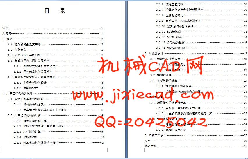 关键词:桥式起重机,大车运行机构,主梁;端梁;焊缝