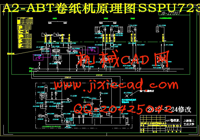 本液压系统以传递动力为主,保证足够的动力是其基本要求。另外,还要考虑系统的稳定性、可靠性、可维护性、安全性及效率。其中稳定是指系统工作时的运动平稳性及系统性能的稳定性(如环境温度对油液的影响等因素)。可靠性是指系统不因意外的原因而无法工作(如油管破裂、无电等情况)。可维护性是指系统尽可能简单,元件尽可能选标准件,结构上尽可能使维护方便.安全性是指不因液压系统的故障导致后车厢盖的其它事故.效率是指液压系统的各种能量损失尽可能的小。上述要求中,除满足系统的动力要求外,最重要的是保证系统的安全性和可靠性。关键词:液压系统,ABT自动卷纸机