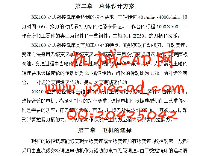 [摘要] 本文根据公司生产加工需要改装一台铣床, 主要用于铣削平面和钻孔,对主轴部件进行重新设计,但仍要用原来的主轴箱,要求主轴的转速范围为40r/min—4000r/min,查机械设计手册确定典型的切削工艺可以求得主轴的切削功率为4.3KW,根据切削功率