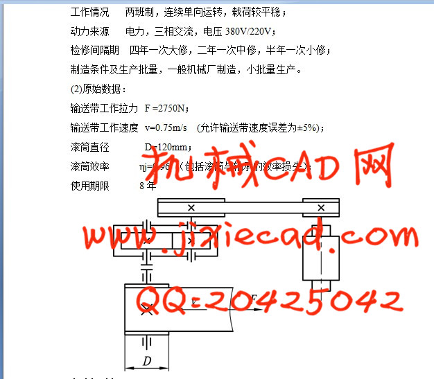 输送带工作速度 v=0.75m/s (允许输送带速度误差为±5%);