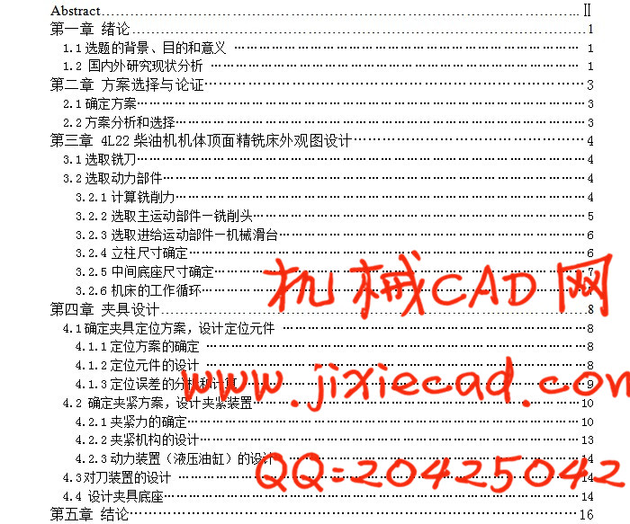 第三章 4L22柴油机机体顶面精铣床外观图设计…………………………………………4