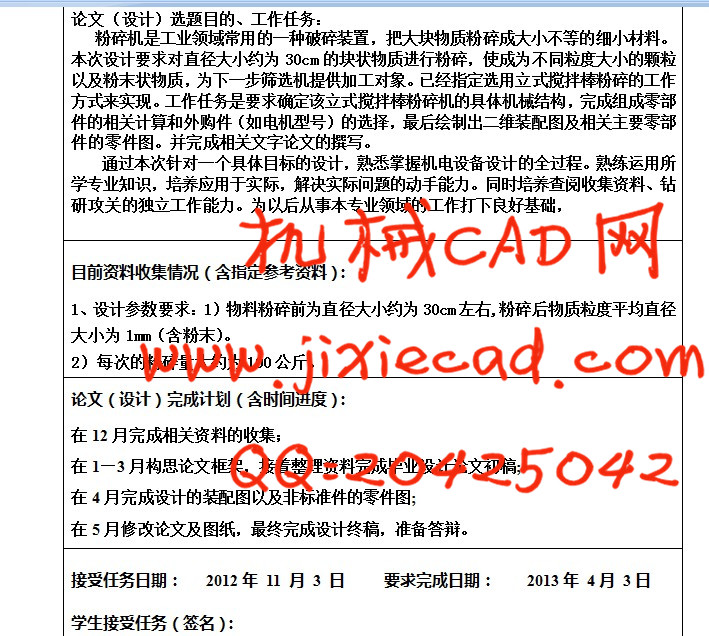 【关键词】:块状物质 粉碎机 搅拌棒 结构设计