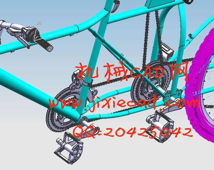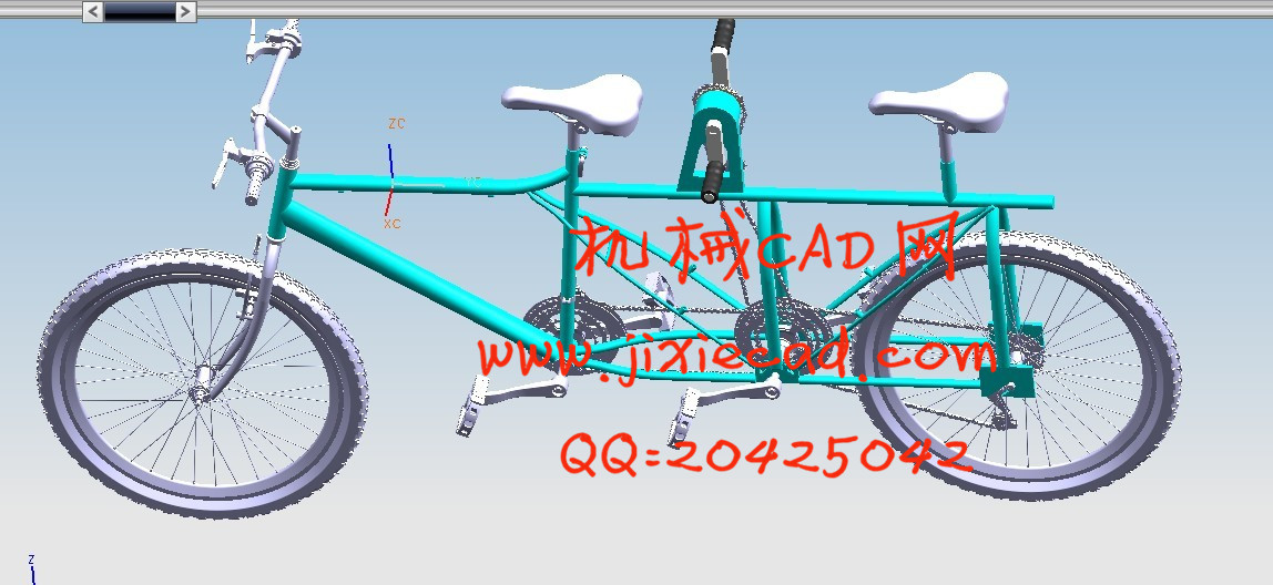 Double seat bicycle in the current market is still relatively rare, the main reason is that the market has been part of the structural design is unreasonable, the stability is not high. This led to the market, more and more rare double seat of bicycle. This topic design, and strive to design better than the market existing products, improve the disadvantages of seat of bicycle double before and after, the true sense of the double side by side to promote a bicycle.