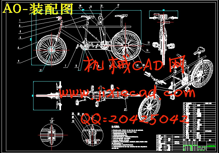 关键词:自行车,双人前后座自行车,健身,机械设计
