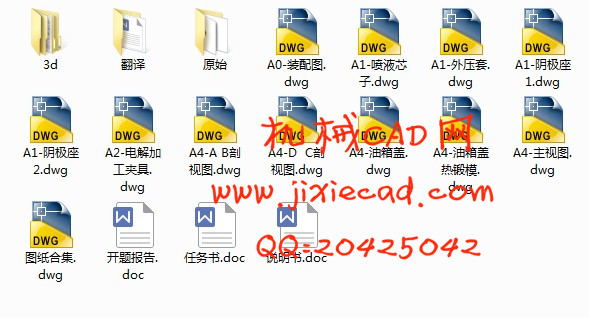 电解加工是利用金属在电解液中发生电化学阳极溶解的原理将工件加工成型的一种特种加工方法。其材料的减少过程以离子的形式进行,由于金属离子的尺寸非常微小,因此这种微溶解去除方式使得电解加工技术在制造领域有着很大的发展潜力。特别是对于难切削加工材料、形状复杂或薄壁零件的加工具有显著优势,在航空、航天推进器以及兵器制造上得到广泛的应用,成为国防工业生产中的关键制造技术。根据研究对象油箱盖热锻模,设计一套加工该热锻模的电解加工工装,包括:(1)油箱盖热锻模电解加工阴极;(2)装夹热锻模加工阴极和工件的夹具装置;(3)运用Pro/E、UG等软件画出油箱盖热锻模电解加工工装三维装配图。电解加工装置除了应保证工件装夹和定位外,还应考虑导电、供液、流场分布,非加工面的保护,工件和工具(即正负极、阴阳极)之间的绝缘等问题。