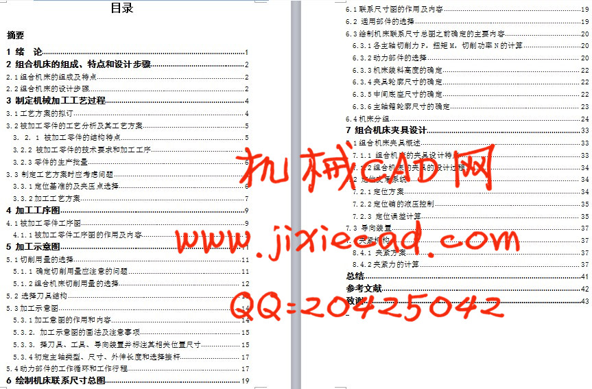 The design topic is design the moduler machine to drill the hole of the speed controller box of The automobiles HK715 in back of department .Because the automobile become soon box has so much holes , if the common drill machines are adopted to drill the holes ,the efficiency will be low and the accuracy is also lower.Especially for produce the quantity of work piece, adopted the combine machine for drill can raise the rate of production and accuracies appropriatively. It is the overall designing which makes up the lathe at first, What this part will be done is how to design and draw the " three pictures "( processing part process picture, process sketch map, lathe get in touch with size general drawing ), these make up the foundation of designing of the lathe . The lathe get in touch with size general drawing has a lot of standard module, such as power slippery platform, incline base part etc .Socend It is the technique designing, mainly the lathe many axle case designing and the lathe’s tongs design and it’s assembles the diagram. the focal point of the many axle case designing, and it each choice and distribution of axle is the most key, so calculate every axle power, torsion wanted design each size of axle rational when working. Through analyse and process the situation of the hole, design the distribution of the main shaft..Because the automation degree of the moduler machine is higher, making up lathe’s tongs and ordinary tongs of lathe are different, adopt hydraulic pressure organization clamp, and adopt and move and sell and make a reservation in succession.Key Words: modular machine,multiple spindle case,fixture