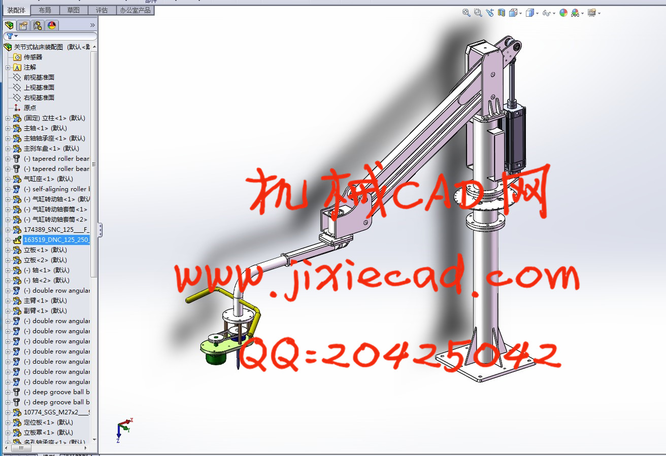关键词:关节式钻床;气缸;Silidworks;自由度。