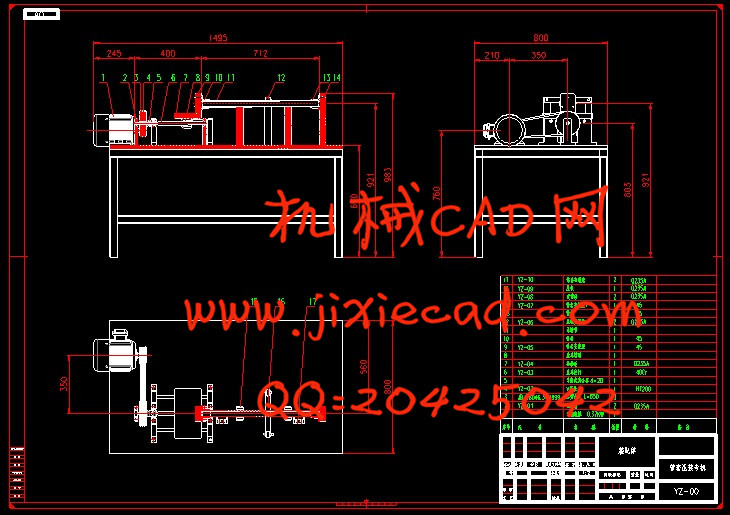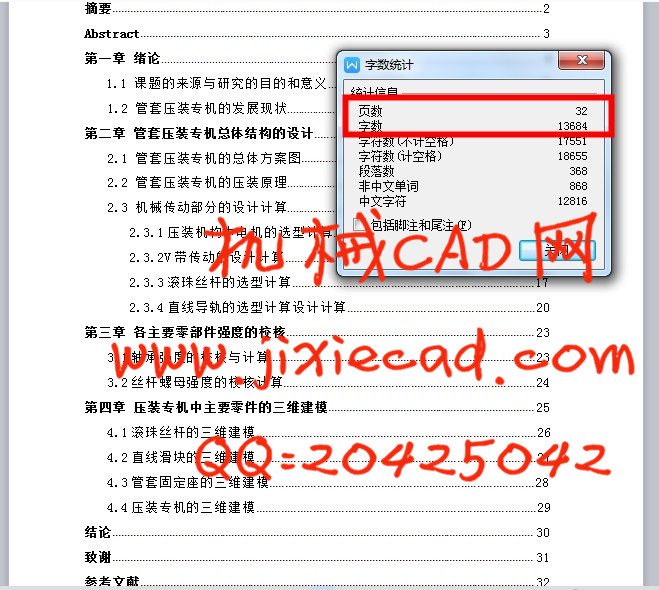 近期对机械行业中轴、轴承和轴套的使用情况进行了调查,发现在机械行业中轴、轴承和轴套是其中的关键零配件。自然而然在装配中它们的安装也非常平凡。在安装轴、轴承和轴套时如果使用人工压配不但劳动强度太大而且相互尺寸不易保证,所以设计一个专用的压装机势在必行。本次的毕业设计课题的是一台管轴压装专机。 本文介绍了管套压装专机的结构组成、工作原理以及主要零部件的设计中所必须的理论计算和相关强度校验,该管套压装专机的优点是高效,经济,并且安全系数高,运行平稳。采用的总体方案是:在专机上定位两轴套相对位置,利用电机减速机提供动力,通过皮带轮带动丝杠转动,进而带动装有螺母的压头移动,将旋转运动化为直线压入运动。采用牙嵌式安全离合器进行过载保护,压配后在管子相应位置通过钻模板钻孔。