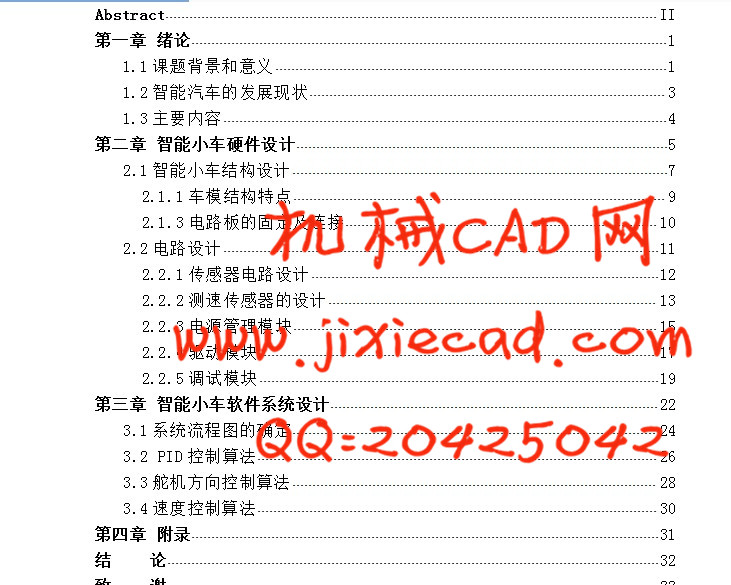 摘 要 ISo this topic to design solution based on road recognition in a smart car control system, using single-chip microcomputer control system, used in its internal storage implementation of the logic operation, sequence control, timing, counting and arithmetic operations, such as operating instructions and through digital and analog input and output to control the whole system, and to achieve complete intelligent vehicle driving function.