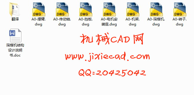本次设计是关于筛煤机结构的设计,通过对传统的筛煤机结构装置的结构进行了优化,使得此种类型的筛煤机的使用范围更广泛,更加灵活,并且对今后的选型设计工作有一定的参考价值。