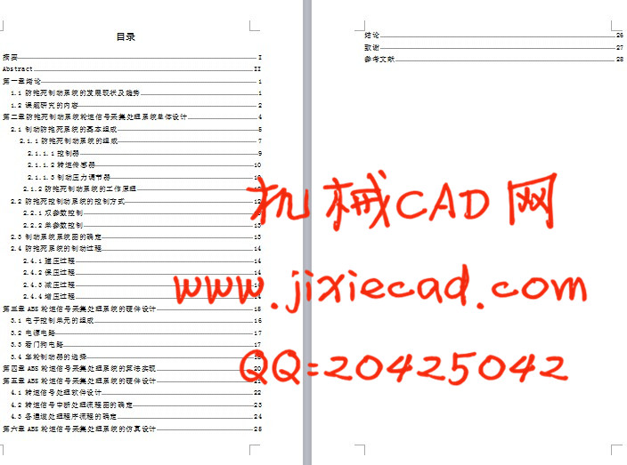 Pneumatic manipulator is a automated devices that can mimic the human hand and arm movements to do something,aslo can according to a fixed procedure to moving objects or control tools. It can replace ABS the heavy labor in order to achieve the production mechanization and automation, and can work in dangerous working environments to protect the personal safety, Therefore widely used in machine building, metallurgy, electronics, light industry and atomic energy sectors.This article is mainly of the pneumatic manipulator the overall design, and pneumatic design.本文介绍了防抱死制动系统的发展及分类,解释了系统基本组成与其工作原理,拟设计了汽车轮速信号采集处理系统的硬件和软件,提出了一种ABS轮速采集的算法,并对该算法的实时性进行了分析;通过仿真试验,证明了硬件设计和软件算法的正确性以及系统的稳定性和实时性,通过本次的关于防抱死制动系统轮速信号采集处理系统的设计,希望能对以后的关于汽车轮速信号采集处理系统的设计起到一定的参考作用和价值。