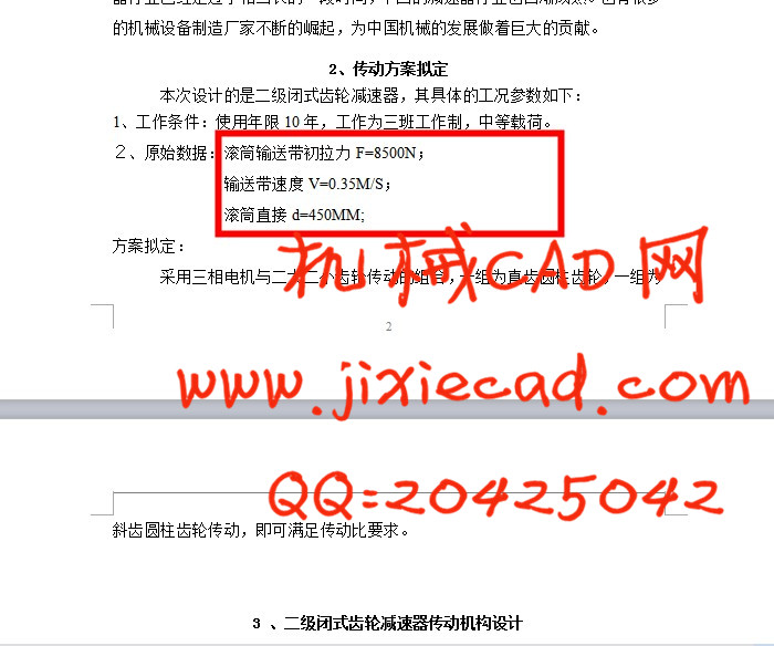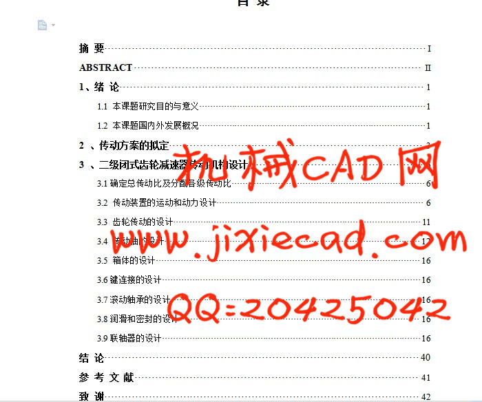 减速器是机械工业中应用最多的既能够提供动力又能够减速,增加输出扭矩的装置,在各行各业的机械设备中都有用到,随着机械工业的越来越强大,各种类型的减速器将会陆续地出现在一些机械设备工厂,从而来满足不同工况的不同需求。本篇毕业设计主要是针对二级闭式齿轮减速器的介绍,对二级闭式齿轮减速器中的各个重要零件,例如传动轴,齿轮等等进行分析和设计,从而设计出参数合理,运行可靠平稳的二级闭式齿轮减速器。