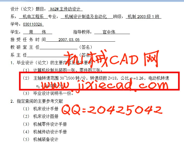 Working out a design plan , ascertain rotation rate picture by moving a parameter, work out tradition system picture, under premise moving and being put into use demanding in guarantee machine tool, motion chain is as short but simple as possible , drive is efficient, design reverse turn and arrester, after finishing drawing assembling picture, checking calculation carrying out checking calculation on main part if gear wheel intensity checking calculation composes in reply a chief axis's, the generally average machine tool chief axis carries out stiffness only checking calculation, carries out the queen who examines according to calculation result and to assembling draft , revises and perfects assembling picture, Compile and compose part code name and work out the entire component.