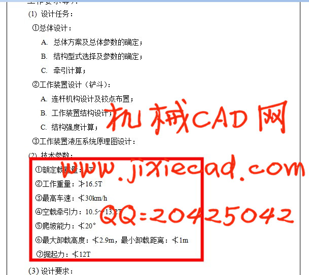 设计步骤简单如下:1.对装载机的总体进行分析,确定总体参数;2.牵引计算,确定出各档及各档传动比;3.对装载机进行整体布置,并绘出总体布置图;4.工作装置的设计为重点,采用相似设计,以ZL20轮式装载机的铲斗为参考斗进行新的铲斗参数设计及选型;采用图解设计法对动臂,斗四连杆机构,斗油缸四连杆机构尺寸进行了优化设计,并着重对铲斗进行设计,其中包括铲斗外形尺寸,确定在装载机上的位置,强度验算。