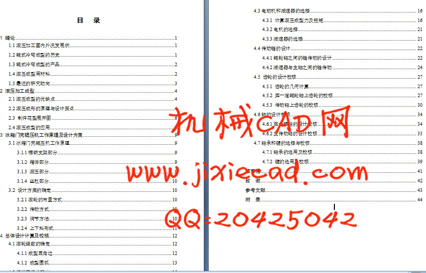 本文从滚压成型的国内外展望入手,重点介绍了滚压成型技术的国内外发展状况,滚压加工的特点、原理及工艺。然后根据冰箱外壳的形状,从理论入手,利用滚压成型技术,设计出质量可靠,制造简单的辊压机。本设计主要做了以下工作:1滚压成型方案的设计;2滚压工艺的基本参数的计算;3辊轮组数的计算、辊间距的计算和设计以及在水平和垂直方向上的调整;4对主要传动装置进行了校核。该设计是在前人设计的基础上改进而成的。与传统的成型工艺相比,滚压成型有显著的优点,不仅成型效果好而且节省材料。当然设计中仍有不足之处和需要改进的地方。
