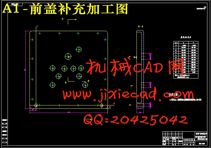 三、齿面孔:2-Ф8.5深24;8-Ф6.7深20;飞面孔:5-Ф12.5深30;4-Ф6.7深20;所有孔表面粗糙度12.5。