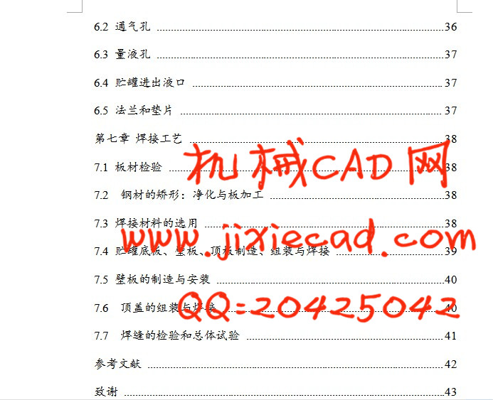 This design has the following design task: 1. The economy of tank size choice; 2. The design of the tank wall; Including the tank wall strength calculation, wind stability calculation of tank, seismic design of the tanks, tank wall structure design, etc. 3. The design of the tank bottom; 4. The design of the tank roof; 5. The design of tank accessories and selection; 6. Welding technology and so on.