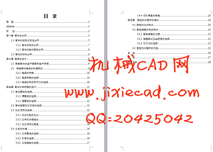 本文主要讲述四件套轴类零件的加工工艺与编程。 轴类零件是机器中经常遇到典型零件之一,它主要用来支撑传动零件,传递扭矩和承受载荷。轴类零件是旋转体零件,其长度大于直径,一般由同心轴的外圆柱面、圆锥面、内孔和螺纹及相应的端面所组成。本设计针对的是典型的复杂轴类配合零件,该零件结构形状复杂,为了保证精度,必须有严格的尺寸要求,和加工工艺,这对加工难度较大。本文仔细的讲述了该零件的加工工艺过程、工艺分析、程序编写、切削参数选取等内容。
