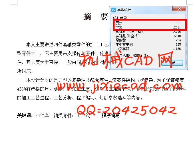 关键词:四件套;轴类零件;工艺设计 ;程序编写