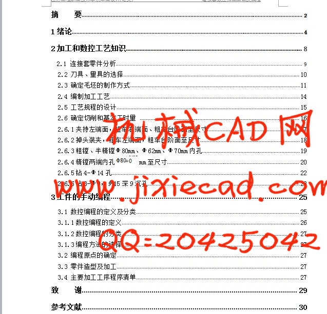 本文主要研究了连接套的作用以及工艺编制及编程。首先分析了连接套筒零件的工艺,并确定制造空白表格,然后发展连接套筒零件的工艺设计,再确定加工余量与毛坯尺寸,毛坯图的设计 ,进行工序设计,最终进行编程。