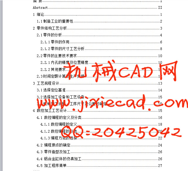 文章的主要内容为基于UG铝合金缸体零件的仿形加工设计,并在零件的手工编程中用到了G01 直线插补命令、G02/G03圆弧插补指令;G81钻孔;M98调用子程序指令等。本篇毕业设计主要针对数控机床的加工及编程的介绍,对铝合金缸体进行工艺性分析,包括加工工艺的选择和制定,还包括各零件的程序的手工编制。