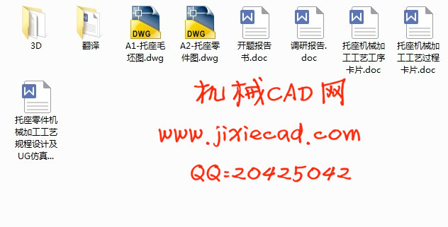 文章的主要内容为托座零件机械加工工艺规程设计及UG仿真设计,并在零件的手工编程中用到了G01直线插补命令、G02/G03圆弧插补指令;G81钻孔;M98调用子程序指令等。本篇毕业设计主要针对数控机床的加工及编程的介绍,对托座零件进行工艺性分析,包括加工工艺的选择和制定,还包括各零件的程序的手工编制。